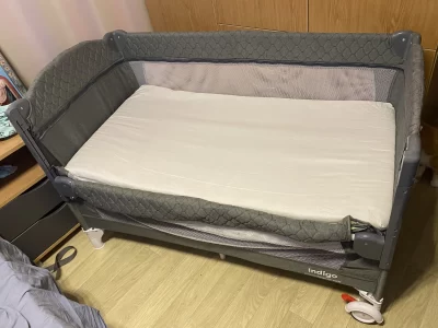 Пoлный комплeкт (сумка, страховочный тросс, для надежной фиксации к родительской кровати). Могу отдать с матрасом за 3500 рублей или без матраса за 3000 рублей. Имеется дефект: сломан один фиксатор на складной стенке (есть на фото), люди с руками сделают без проблем.