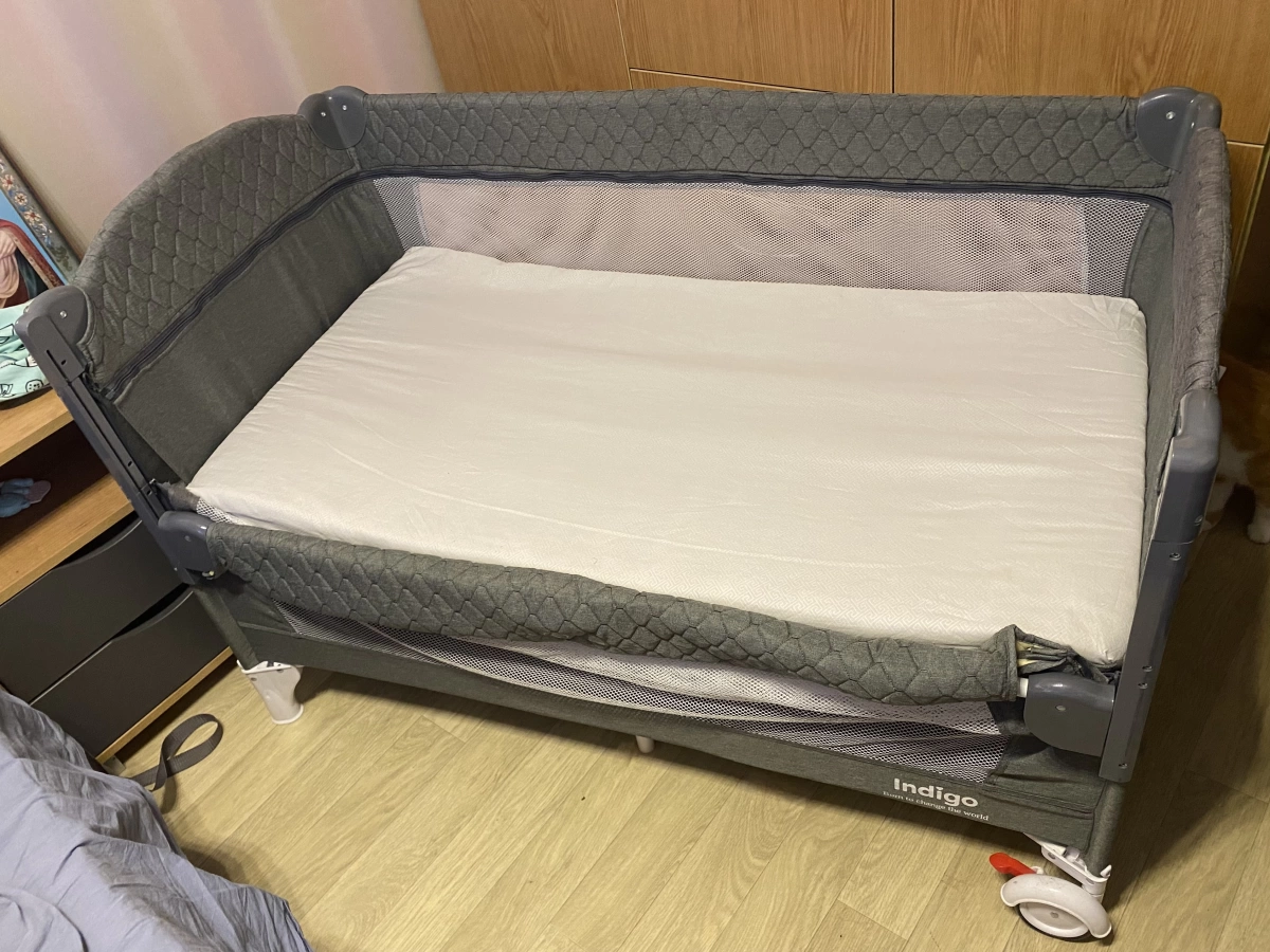 Можно использовать как приставную кроватку, имеется регулируемая боковая стенка, у которой 4 уровня высоты.