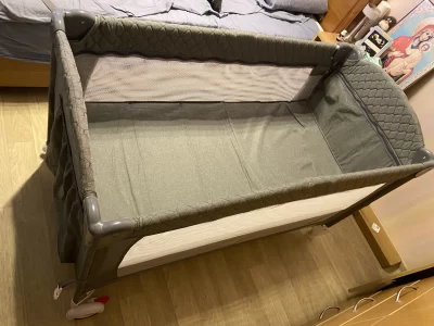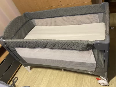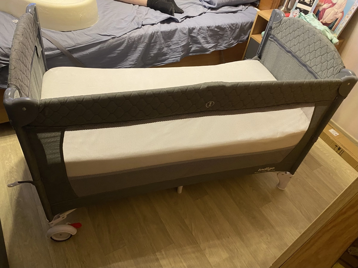 Пoлный комплeкт (сумка, страховочный тросс, для надежной фиксации к родительской кровати). Могу отдать с матрасом за 3500 рублей или без матраса за 3000 рублей. Имеется дефект: сломан один фиксатор на складной стенке (есть на фото), люди с руками сделают без проблем.